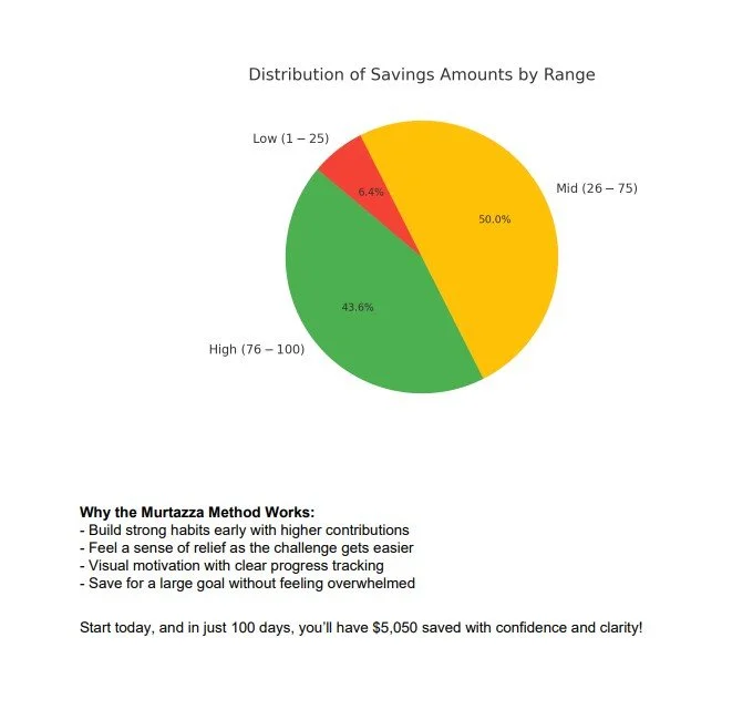 The Murtazza Method is a simple yet powerful savings challenge that turns the daunting goal of saving thousands of dollars into a motivating and achievable journey. Unlike traditional saving where you start small and gradually increase, this method flips the script: